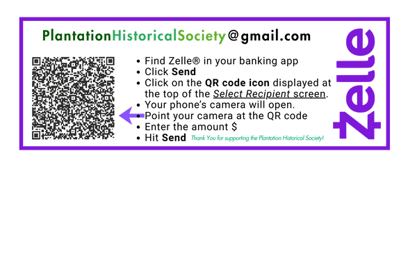 Please make check out to PLANTATION HISTORICAL SOCIETY